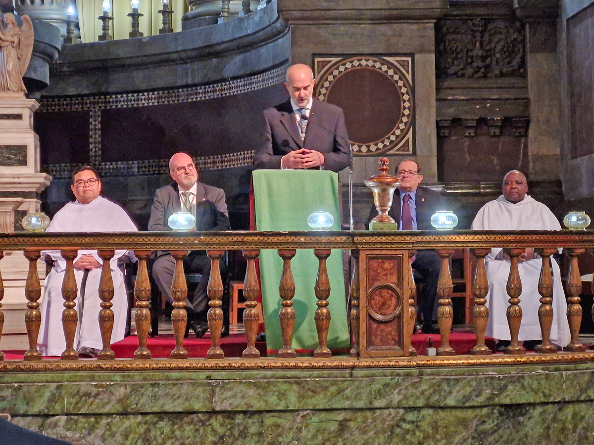 El padre Fermín leyó el Evangelio, y seguidamente el Cardenal hizo la homilía, "que Dios haga de las Cofradías verdaderos faros de Esperanza para la ciudad y la Iglesia de Barcelona, ser testimonios de luz en medio de la sociedad, destacando además la Piedad Popular y las cofradías como auténticas escuelas de vida cristiana".